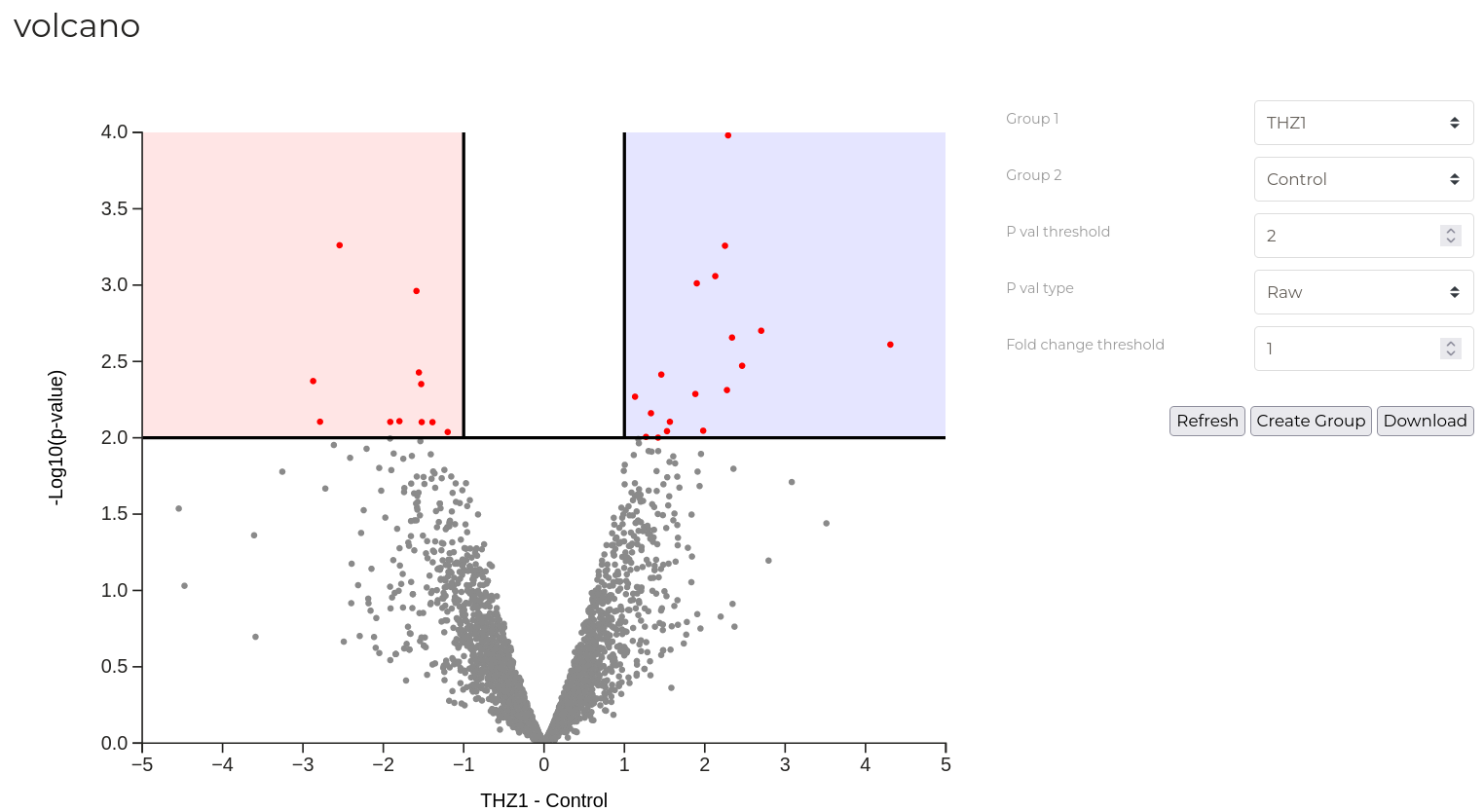 | Comparison Group 1/2 | The two sample treatment groups that should be considered in conctruction of the volcano plot. |